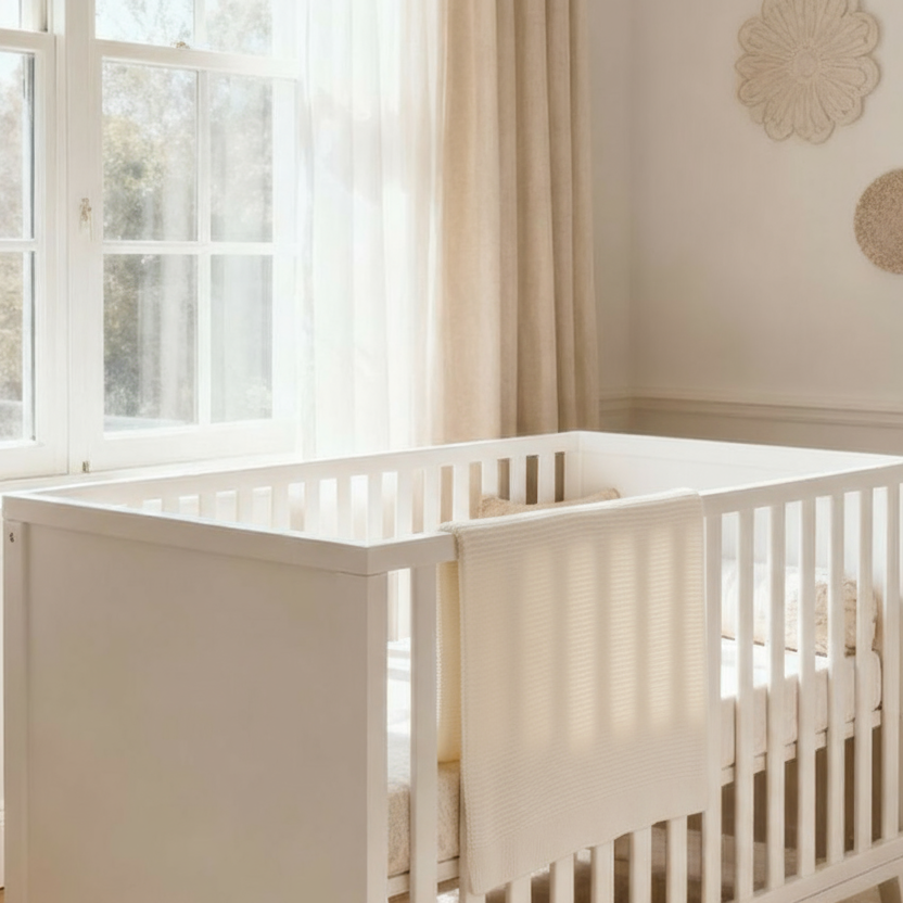 Crafted from 100% premium bamboo viscose, our classic cable-knit blanket offers comfort and style. Designed to regulate temperature and be hypoallergenic, it's ideal for keeping comfy all year round. The smooth texture is perfect for snuggling, whether at home, in the pram, or on a walk, and it adds a touch of elegance to any nursery decor. This luxurious blanket ensures warmth and comfort in every setting.